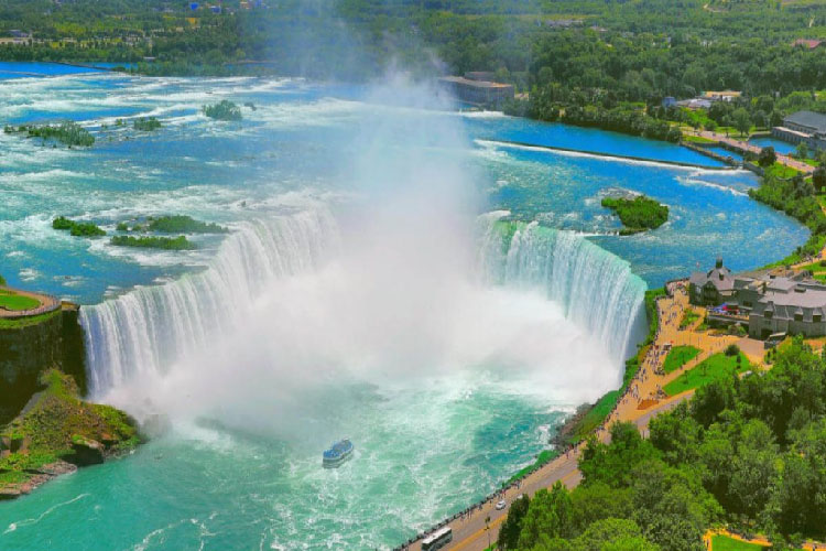 Tidak diragukan lagi salah satu air terjun paling terkenal di dunia, Air Terjun Niagara berada di perbatasan antara Amerika Serikat dan Kanada yang berarti bahwa daya tarik yang menggemuruh dapat dilihat dari kedua negara tersebut meskipun titik yang menguntungkan dari sisi Kanada sering disebut sebagai yang terbaik. Yang mengatakan, jika di bagian barat New York State, Anda mendapatkan kesempatan untuk mendekati ketiga jatuh yang membentuk Niagara Horseshoe, Bridal Veil dan American meskipun dari atas ke bawah, tetapi masih ada kesempatan untuk mengambil di air terjun di dalamnya. keseluruhan.